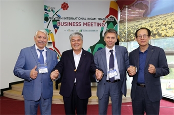 ¹®Á¤¿ì ±º¼ö°¡ 1ÀÏ ¼öÃâ»ó´ãȸ¿¡ ¾Õ¼­ ·¯½Ã¾Æ ISTCÇùȸ Ruslan Koshikin ȸÀå(¿ÞÂÊ)°ú Æ÷Á ÃëÇϰí ÀÖ´Ù.(»çÁøÁ¦°ø=±Ý»ê±ºÃ») ±Ý»ê±ºÀº Á¦3...