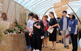 Á¦38ȸ ±Ý»êÀλïÃàÁ¦Àå ³»¿¡ ¡®È­¼ö¸ñȸ¡¯ ȸ¿øµéÀÌ Àλï°ú ¾ß»ýÈ­¸¦ ÁÖÁ¦·Î ÇÑ ÀÛǰµéÀ» °ü¶÷Çϰí ÀÖ´Â ¸ð½À.(»çÁøÁ¦°ø=±Ý»ê±ºÃ») Á¦38ȸ ±Ý»êÀλïÃàÁ¦Àå ³»¿¡...