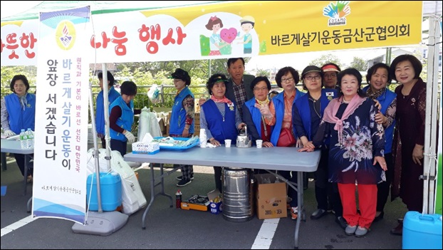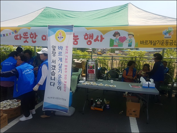 ÇÑÆí ¹Ù¸£°Ô»ì±â¿îµ¿ ±Ý»ê±ºÇùÀÇȸ´Â ±Ý»êõ º¢²ÉÃàÁ¦, Àå¾ÖÀÎ, Áö¿ª¾Æµ¿¼¾ÅÍ¿¡ ¸Ô°Å¸®(¶ó¸é, ½Ò, °í±â, »ýÇÊǰ µî)¸¦ Á¦°øÇϰí ÀÖ¾î Áö¿ª»çȸÀÇ µû¶æÇÑ ¸¶À½ ³ª´® ¹®È È®»ê¿¡ ±â¿©Çϰí ÀÖ´Ù´Â Æò°¡¸¦ ¹Þ°í ÀÖ´Ù.