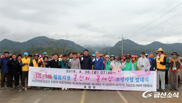 Á¦¿ø¸é(¸éÀå ±èâ¼·)Àº 1°(±Ý°) 3õ(ºÀȲõ, Á¶Á¤Ãµ, ½Å¾Èõ)ÀÌ ÇÕ·ùÇϰí 4°³ÀÇ ¶ãµéÀÌ À§Ä¡ÇÑ Æ÷Æò¶ã ±æ¿¡ ¡®Çâ±â³ª´Â 4°èÀý ²É´ÜÁö¡¯¸¦ Á¶¼ºÇϱâ À§ÇØ Áö³ 26ÀÏ ±Ý»ê±º¼ö¸¦ ºñ·Ô Áö¿ªÁֹΠµî 200¿© ¸íÀÌ Âü¿©ÇÑ °¡¿îµ¥ ¡®10¸®±æ ¹«±ÃÈ ²É ½ÄÀç»ç¾÷ ¹ß´ë½Ä¡¯À» °³ÃÖÇß´Ù°í ¹àÇû´Ù.