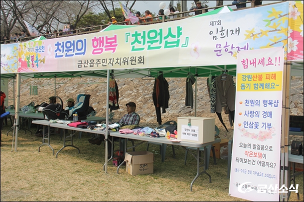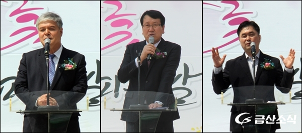 ¿ÀÀü 10½Ã50ºÐ ¡®³­Å¸°ø¿¬¡¯°ú °­¿øµµ »êºÒÇÇÇØ ±âºÎ±Ý ¸¶·ÃÀ» À§ÇÑ ¡®¹Ý¦°æ¸Å¡¯, ±Ý»êÃâ½Å °¡¼ö À¯Âù°ú °­Çý¿øÀÇ ½Å¸í³ª´Â °ø¿¬À¸·Î °³¸·À» ¾Ë¸° ±Ý»êõ º½²ÉÃàÁ¦ °³È¸½Ä¿¡´Â ¹®Á¤¿ì ±Ý»ê±º¼ö, ±èÁ¾ÇÐ ±Ý»ê±ºÀÇÀå°ú ±ºÀÇ¿ø, ±èÁ¾¹Î ±¹È¸ÀÇ¿ø, ±è¼®°ï Ãæ³²µµÀÇ¿ø, ÀÌÅ¿¬ ±Ý»ê±³À°Àå, ä¼öö ¼Ò¹æÀåÀ» ºñ·ÔÇØ °ü³» »çȸ´ÜüÀå, 10°³ À¾¡¤¸é ÀÌÀå µî 1¸¸¿© ¸íÀÌ ÇÔ²² Çß´Ù.