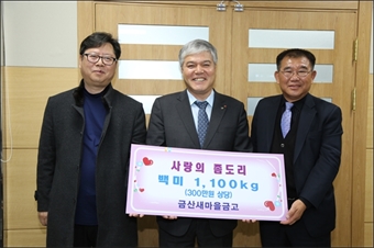 ±Ý»ê»õ¸¶À»±Ý°í(ÀÌ»çÀå. ¹ÚÁ¤¼ø)°¡ Áö³­ 27ÀÏ ±Ý»ê±ºÀ» ¹æ¹®ÇØ ±Ý»ê±ºÁö¿ª¾Æµ¿¼¾ÅÍ¿¡ »ç¿ëÇØ ´Þ¶ó¸ç ¹é¹Ì 55Æ÷(1100kg 300¸¸¿ø »ó´ç)¸¦ Àü´ÞÇß´Ù.À̳¯ ...