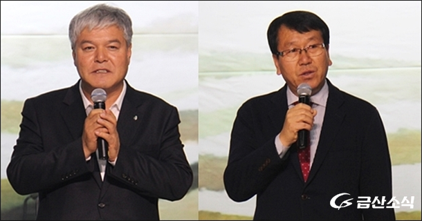 ÀüÀÓ ÀÌöÁÖ ¹®È­¿øÀå(»çÁø ¿À¸¥ÂÊ)Àº ±â³ä»ç¿¡¼­ ¡°Á¸°æÇÏ´Â ÈĹè ÀåÈ£ ºÎ¿øÀå´ÔÀÌ ±Ý»ê¹®È­¿øÀåÀ¸·Î ´ç´çÇÏ°Ô ´ç¼± Ãß´ë µÆ´Âµ¥, ÀåÈ£ ¿øÀå´ÔÀº ±×°£ ¹®È­¿øÀº ¹°·Ð Áö¿ª»çȸÀÇ ¹ßÀü¿¡µµ ¸¹Àº ±â¿©¸¦ ÇØ¿À½Å ºÐÀ̱⿡ Àú¿Í´Â ´Ù¸¥ ´ç½Å¸¸ÀÇ »ö±òÀ» ´ãÀº ¹®È­¿øÀ» ¸¸µé°í Àß À̲ø¾î ³ª°¥ °ÍÀ̶ó°í ¹Ï´Â´Ù¡±¸ç ¡°Á¦°¡ 6³â µ¿¾È ±Ý»ê¹®È­¿ø¿¡¼­ Ȱµ¿Çϸ鼭 ¿ì¸® ¹®È­¿ø °¡Á·µé¿¡°Ô´Â ´«¹° °ãµµ·Ï °¨»çÇϰí, ¿ÀÈ÷·Á 6³âµ¿¾È »ýȰÇϸ鼭 °¨»çÇϰí ÇູÇß´Ù¡±°í ¼ÒȸÇß´Ù.