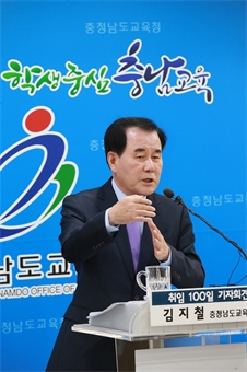 ±èÁöö Ãæ³²µµ±³À°°¨ÀÌ Áö³­8ÀÏ µµ±³À°Ã»¿¡¼­ ÃëÀÓ 100ÀÏ ±âÀÚȸ°ßÀ» °®°í ¡°À¯Ä¡¿øºÎÅÍ °íµîÇб³±îÁö ¹«»ó±³À°À» ½Ç½ÃÇϰڴ١±¶ó°í ¹àÇô ÇкθðµéÀÇ ¾î±ú°¡ ÇÑÃþ °¡...