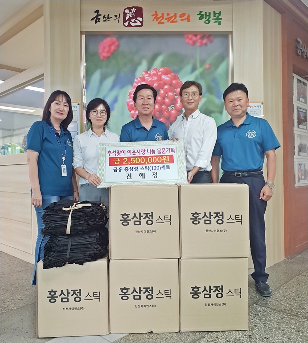 ±Ý»ê±º ±ººÏ¸é¿¡ ¼ÒÀçÇÑ ¢ßÁø»ê»çÀ̾ð½º(´ëÇ¥ ±ÇÇýÁ¤)°¡ Áö³­ 27ÀÏ ±Ý»êÀ¾»ç¹«¼Ò¸¦ ã¾Æ ¡®È«»ïÁ¤½ºÆ½ 100¼¼Æ®(250¸¸¿ø »ó´ç)¸¦ ±âŹÇß´Ù. ±âŹµÈ ¹°Ç°Àº °ü³» Àú¼ÒµæÃþ°¡±¸¸¦ ´ë»óÀ¸·Î ¸öÀÌ ºÒÆíÇÑ ¾î¸£½Åµé¿¡°Ô Àü´ÞµÆ´Ù.