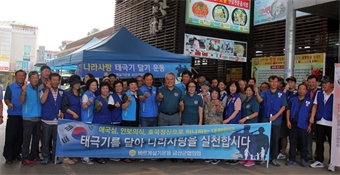 Á¦73Áֳ⠱¤º¹ÀýÀ» »çÈê ¾ÕµÐ 12ÀÏ ¹Ù¸£°Ô»ì±â¿îµ¿ ±Ý»ê±ºÇùÀÇȸ(ȸÀå ¹®±â¼±) ȸ¿øµéÀÌ ±Ý»ê¼ö»ï¼¾ÅÍ ¾Õ¿¡¼­ ³ª¶ó»ç¶û űر⠴ޱâ Ä·ÆäÀÎÀ» ÆîÃÆ´Ù.¾Ö±¹½ÉÀ» °í...