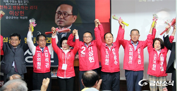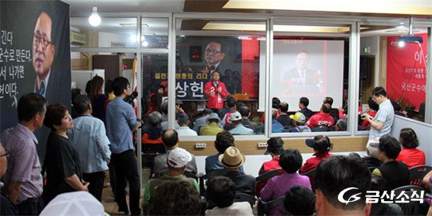 À̳¯ °³¼Ò½Ä¿¡´Â ÀÌÀÎÁ¦ Ãæ³²µµÁö»ç Èĺ¸ ºÎÀÎ ±èÀº¼÷ ¿©»ç, ±èµ¿¿Ï Àü ±¹È¸ÀÇ¿ø, À̵¿Áø °Ç¾ç´ë ºÎÃÑÀå, ±è¼®°ï, ±èº¹¸¸ µµÀÇ¿ø, ±Ý»ê±º±×¶ó¿îµå°ñÇÁÇùȸ ±èâ¼ö ȸÀå, ÃÖµ¿È¯ ±Ý»êÀλïÃàÁ¦À§¿øÀå, ÁöÁöÀÚ µîÀÌ Âü¼®ÇßÀ¸¸ç, À̿ϱ¸ Àü ÃѸ®, À̸í¼ö(¾Æ»ê½Ã°©) ÀÇ¿ø, ¼ºÀÏÁ¾(¼»ê?žÈ) ÀÇ¿øÀÌ ¿µ»óÀ» ÅëÇØ ÀÌ»óÇå Èĺ¸ÀÇ ÁöÁö¸¦ È£¼ÒÇß´Ù.