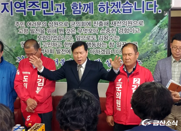 ÀÌ»óÇå ±º¼öÈ帴 ¡°±è¿Õ¼ö Èĺ¸ÀÇ °³¼Ò½Ä Âü°¡Àڵ鿡°Ô °¨»ç¸¦ µå¸®¸ç, È« ¸ñ»çÀÇ ±âµµ·Î È®½ÇÈ÷ ¾Ð½ÂÇÒ °ÍÀ¸·Î ¹Ï°í, µÎ ¹øÀÇ ÀÇ¿ø°æ·ÂÀÌ ±Ý»êÀÇ À§±â¸¦ ÇìÃÄ ³ª°¥ °ÍÀ̸ç, ±è¿Õ¼ö ÀÇ¿øÀÇ ÃßÁø·ÂÀº ±Ý»ê¿¡ ²À ÇÊ¿äÇÑ ¿ä¼Ò¡±¶ó°í °Á¶ÇÏ¸é¼ 3¼±ÀÇ ½Â¸®¸¦ ±â¿øÇß´Ù.