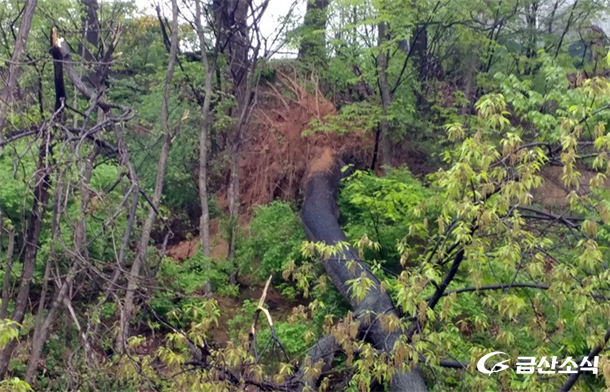 ±Ý»êÀ¾ ³²»ê ¼ÂÊÀÇ ³ª¹«°¡ Áö³ 20ÀÏ »Ñ¸®°¡ »ÌÈù ä·Î ¾²·¯Áø ä·Î ¹æÄ¡µÅ ÀÖ¾î Àα٠ÁÖ¹ÎÀÌ ºÒ¾È ÇØ Çϰí ÀÖ´Ù.