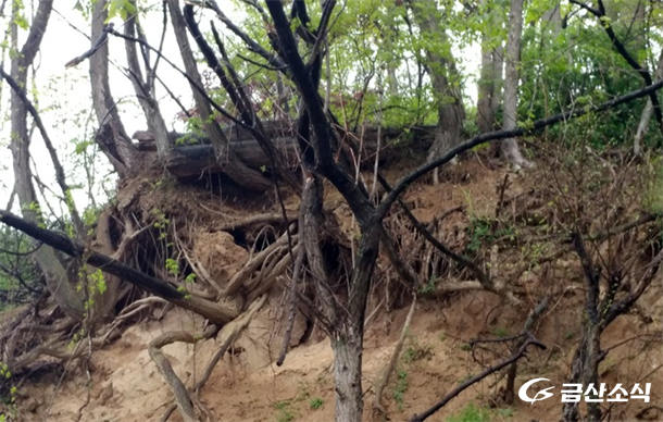 ³²»ê ¼ÂʹæÇâÀÇ ±Þ°æ»ç·Î ÀÎÇØ ³ª¹«°¡ ¾²·¯Áú À§Çè¿¡ Ã³ÇØ ÁֹεéÀÌ ºÒ¾ÈÀ» ´À³¢°í ÀÖ´Â ¹Ý¸é ºÏÂÊÀÇ ¹ý¸éÀº µµ·Î¸¦ °³¼³ÇÒ ½Ã »ýÅÂºí·°µµ ½×°í Àܵ𵵠½É¾î ¾ÈÀüÇÑ °ÍÀ¸·Î º¸ÀδÙ.