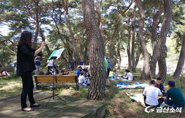 »ó¸¶¼ö¸® ¼Ö¹ç±æ¿¡ µµÂøÇÑ ´Ü¿øµéÀÌ ¡°»êÇà ±æ¿¡¼ ÀÌ·± À½¾ÇÀ» µéÀ» ¼ö ÀÖ´Ù´Ï...¡±¶ó´Â ÇÑ ´ä»ç´Ü¿øÀÇ ¸»°ú ÇÔ²² ¸¶¼ö¸® ¼Ö¹ç¿¡¼ Á¡½É½Ä»ç¸¦ À§ÇØ µµ½Ã¶ôÀ» ¿±â ¹Ù»Ú°Ô À±¹Ì¼± ÇÃ·Ô ¿¬ÁÖ´Â ¼ú·¡±æ ´ä»ç¿¡ Âü°¡ÇÑ ´Ü¿øµéÀÇ ¹Ú¼ö¸¦ ÀھƳ´Ù.