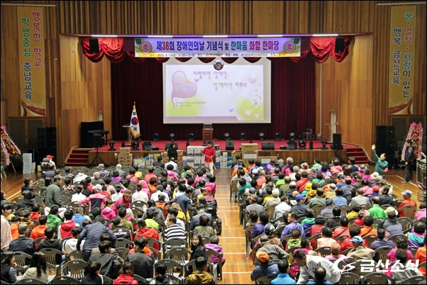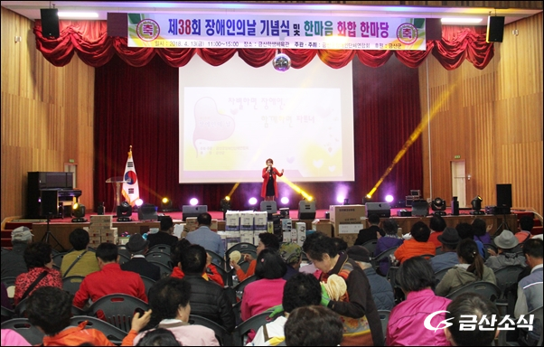 ±Ý»ê±ºÀå¾ÖÀδÜü¿¬ÇÕȸ(ȸÀå ±æÀ±Çö)°¡ ÁÖÃÖ¡¤ÁÖ°üÇÏ°í ±Ý»ê±ºÀÌ ÈÄ¿øÇÑ 'Á¦38ȸ Àå¾ÖÀÎÀÇ ³¯ ±â³ä½Ä ¹× ÇѸ¶À½ ÈÇÕ´ëȸ¡®°¡ 13ÀÏ ¿ÀÀü 11½ÃºÎÅÍ ¿ÀÈÄ3½Ã±îÁö ±Ý»êÇлýüÀ°°ü¿¡¼ °³ÃֵƴÙ.