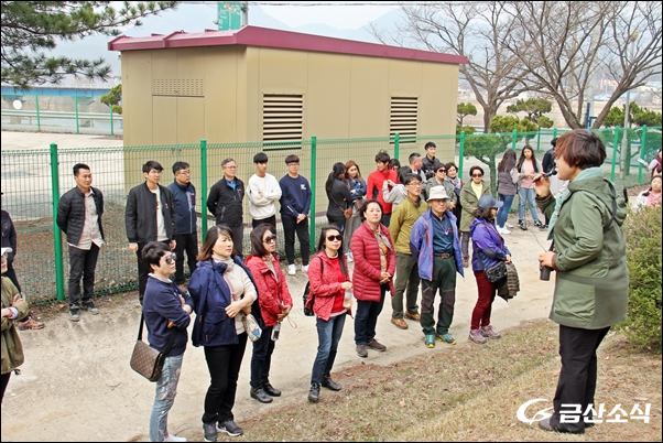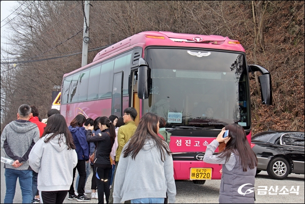(±¸)ÇâÅä°ü ÀλïÁ¶Çü¹° ¾Õ¿¡ Áý°áÇÑ ´ä»ç´ÜÀº ¹ö½º¿Í ½ÂÇÕÂ÷¸¦ Ÿ°í 20¿© ºÐ °£ À̵¿ÇØ ¡®±Ý° ¼Ö¹Ù¶÷±æ¡¯ÀÇ Ãâ¹ßÁöÀÎ ±Ý°»ýŰúÇÐüÇèÀå(±Ý»ê±º Á¦¿ø¸é ´Ú½Ç±æ)¿¡ µµÂøÇß´Ù.