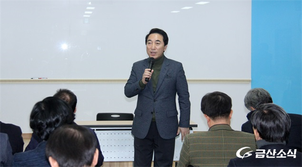 ¿ÀÈÄ2½Ã ±Ý»ê¼ö»ï¼¾ÅÍ2Ãþ¿¡¼­ ¿­¸° °£´ãȸ¿¡¼­ ¹Ú¼öÇö ¿¹ºñÈ帴 ¡°Çغ¹ ¸¹ÀÌ ¹ÞÀ¸¼Ì½À´Ï±î? »õÇØ º¹ ¸¹ÀÌ ¹ÞÀ¸½Ã±æ ¹Ù¶ø´Ï´Ù! ¶ó´Â ¸»À» ½ÃÀÛÀ¸·Î ¿À´Ã ±Ý»êÀ» ãÀº ÀÌÀ¯´Â Á¤½ÄÀ¸·Î °£´ãȸ³ª Á¤Ã¥Åä·Ðȸ³ª Á¶Á÷À» À§Çؼ­ ¹æ¹®ÇÑ °ÍÀÌ ¾Æ´Ï´Ù¡±¶ó°í ¸»Çϸ鼭 ¡°Ã»¿Í´ë ÅðÁ÷Àλ簳³äÀ¸·Î ±Ý»êÀ» ã¾Ò´Ù¡±°í ¸»Çß´Ù.