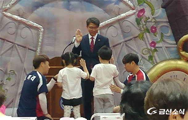 Çà»çÀå¿¡ ¼ ÀÖ´Â ¾î¸°À̵éÀ» ÀÚ¸®¿¡ ¾ÉÈ÷¸é¼ ±Ý»ê±ºÀÇȸ ÀÌ»óÇå ÀÇÀåÀº ¡°À¯¾ÆÀμºÀ» À§ÇØ ³ë·ÂÇÏ°í »ç¶ûÇÏ´Â ¸¶À½À» Á¸°æÇÑ´Ù¡±°í °Á¶ÇÏ¸é¼ ¡°»ç¶ûÇÏ´Â ¸¶À½À¸·Î ±Ý»êÀÇ ÀÎÀ縦 À°¼ºÇÏ±æ ¹Ù¶õ´Ù¡±°í ±â¿øÇß´Ù.