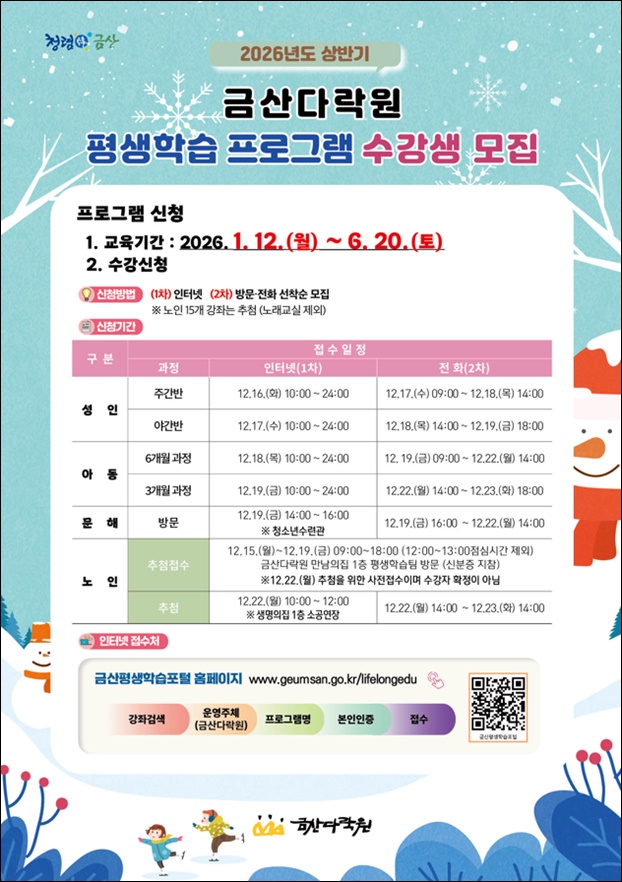 ±Ý»ê´Ù¶ô¿ø, 2026³â »ó¹Ý±â Æò»ýÇнÀ ¼ö°­»ý ¸ðÁý