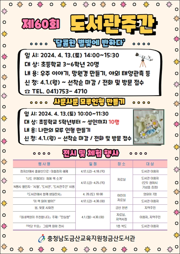 ÇÁ·Î±×·¥¿¡ °üÇÑ ÀÚ¼¼ÇÑ »çÇ×Àº µµ¼­°ü ´©¸®Áý °øÁö»çÇ× ¶Ç´Â ÀüÈ­(041-753-4710)·Î ¹®ÀÇÇϸé Ä£ÀýÇÏ°Ô ¾È³» ¹ÞÀ» ¼ö ÀÖ´Ù.