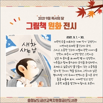 ±Ý»êµµ¼­°ü(°üÀå ¹ÚÂùÈñ)ÀÌ 9¿ù µ¶¼­ÀÇ ´ÞÀ» ¸Â¾Æ ¿À´Â 30ÀϱîÁö ÁöÇÏ 1Ãþ ¹®È­±³½Ç º¹µµ °ø°£¿¡¼­ ¡®»õ Â÷ »ç´Â ³¯¡¯±×¸²Ã¥ ¾ÆÆ® ÇÁ¸°Æ® 12Á¡À» Àü½ÃÇÑ´Ù....
