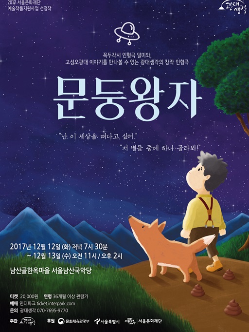 ±¤´ë»ý°¢ÀÌ ÁÖ°üÇÏ°í ¹®ÈüÀ°°ü±¤ºÎ, ¼¿ïƯº°½Ã, ¼¿ï¹®ÈÀç´ÜÀÌ ÈÄ¿øÇϴ âÀÛ¿¬Èñ´Üü ±¤´ë»ý°¢(´ëÇ¥ ¼±¿µ¿í)ÀÇ Ã¹ ¹øÂ° ±âȹ°ø¿¬ ²ÀµÎ°¢½Ã ´ú¹ÌÀÎÇü±Ø <¹®µÕ¿ÕÀÚ>°¡ 12¿ù 12ÀÏ~13ÀϱîÁö ³²»ê±¹¾Ç´ç¿¡¼ ÁøÇàµÈ´Ù.