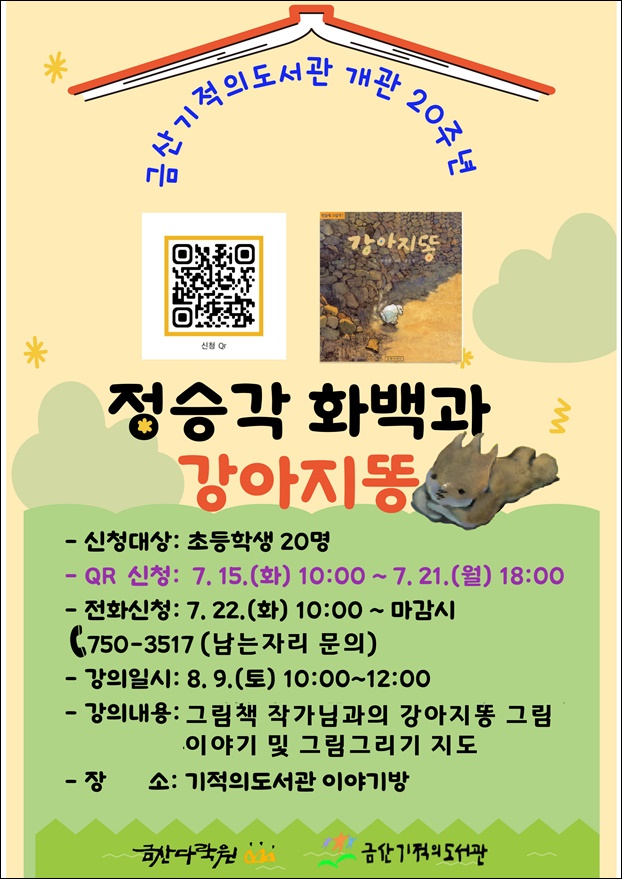±Ý»ê±âÀûÀǵµ¼­°üÀº ¿À´Â 15ÀÏ ¿ÀÀü 10½ÃºÎÅÍ 21ÀÏ ¿ÀÈÄ 6½Ã±îÁö ¡®°­¾ÆÁö¶Ë°ú Á¤½Â°¢ È­¹é¡¯ ÇÁ·Î±×·¥¿¡ Âü¿©ÇÒ ¾î¸°ÀÌ 20¸íÀ» ¸ðÁýÇÑ´Ù.