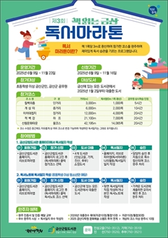 ±Ý»ê±ºÀº ¿À´Â 11¿ù 23ÀϱîÁö °ü³» °ø․»ç¸³ ¹× Çб³ µî ¸ðµç µµ¼­°ü¿¡¼­ ¡®2025 Ã¥ Àд ±Ý»ê µ¶¼­¸¶¶óÅæ ½ÃÁð 3¡¯¸¦ ¿î¿µÇÑ´Ù.ÀÌ ÇÁ·Î±×·¥Àº...