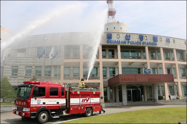 ÈÆ·Ã¿¡´Â °æÂû¼­ ÀÚÀ§¼Ò¹æ´ë 51¸í, ±Ý»ê¼Ò¹æ¼­ ¼Ò¼Ó ¼Ò¹æ´ë¿ø 6¸í, ¼Ò¹æÂ÷ 3´ë¿Í ±¸±ÞÂ÷ 1´ë°¡ Âü¿©ÇßÀ¸¸ç, ½ÇÁ¦·Î È­Àç°¡ ¹ß»ýÇßÀ» ¶§¿Í ¶È°°ÀÌ ¼ÒÈ­±â¿Í ¼ÒÈ­ÀüÀ» »ç¿ëÇϰí, ¼Ò¹æÂ÷¸¦ ÀÌ¿ëÇÑ È­ÀçÁø¾Ð°ú ȯÀÚÈ£¼Û µîÀ» ÀÏ»çºÐ¶õÇÏ°Ô ½Ç½ÃÇß´Ù.