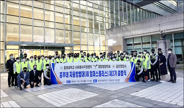 ±Ý»ê°æÂû¼(¼Àå ±æ¿ì±Ù)´Â Áö³ 24ÀÏ ÁߺδëÇб³ ÀçÇлý 72¸í°ú °øµ¿Ã¼ Ä¡¾È Ȱ¼ºÈ ÀÏȯÀ¸·Î ¾ÈÀüÇÑ Ä·ÆÛ½º Á¶¼ºÀ» À§ÇØ ¡®ÁߺδëÇб³ ÀÚÀ²¹æ¹ü´ë(ÀÌÇÏ JB Ä·ÆÛ½ºÆú¸®½º) 2±â¸¦ Á¤½Ä Ãâ¹üÇß´Ù°í ¹àÇû´Ù.