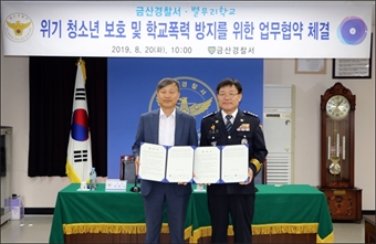 ±Ý»ê°æÂû¼­(¼­Àå À̾Ⱥ¹)´Â 20ÀÏ ¼ÒȸÀǽǿ¡¼­ À̾Ⱥ¹ ¼­Àå°ú º°¹«¸®Çб³ ±³Àå µîÀÌ Âü¼®ÇÑ °¡¿îµ¥ À§±â û¼Ò³â º¸È£ ¹× Çб³Æø·Â ¹æÁö¸¦ À§ÇÑ ¾÷¹«Çù¾àÀ» ü°áÇß...
