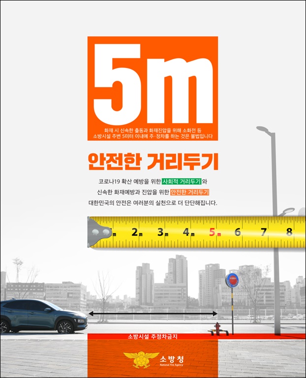 ¡®¡¸·Î±³Åë¹ý¡¹Á¦32Á¶(Á¤Â÷ ¹× ÁÖÂ÷ÀÇ ±ÝÁö)¡¯¿¡¼­´Â ¼Ò¹æ¿ë¼ö½Ã¼³ ¶Ç´Â ºñ»ó¼ÒÈ­ÀåÄ¡°¡ ¼³Ä¡µÈ Àå¼Ò·ÎºÎÅÍ 5m À̳» Â÷¸¦ Á¤Â÷Çϰųª ÁÖÂ÷ÇÏÁö ¸øÇϵµ·Ï ±ÔÁ¤Çϰí ÀÖ´Ù.