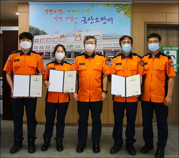 ¡ã8ÀÏ ºê·¹Àμ¼À̹ö ÀÎÁõ¼¸¦ ¹ÞÀº ±Ý»ê¼Ò¹æ¼ ±¸Á¶´ë¿ø(¿ÞÂÊ Ã¹ ¹øÂ° ¹ÚÂù¿í, µÎ ¹øÂ° ±èÀº¹Ì, ³× ¹øÂ° ¿°½Â¼±)µéÀÌ °À±±Ô ¼Àå(°¡¿îµ¥)¿Í ±â³ä»çÁøÀ» ÃÔ¿µÇÏ´Â ¸ð½À. ¨Ï±Ý»ê¼Ò¹æ¼
