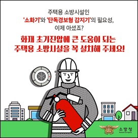 ¼Ò¹æ¼­¿¡ µû¸£¸é ÃÖ±Ù 3³â °£ Àüü È­ÀçÀÇ 24%, È­Àç»ç¸ÁÀÚÀÇ 60%°¡ ÁÖÅÿ¡¼­ ¹ß»ýÇß´Ù. ÁÖÅÃ¿ë ¼Ò¹æ½Ã¼³ ¼³Ä¡ ½Ã È­Àç°¡ ¹ß»ýÇßÀ» ¶§ ½Å¼ÓÇÑ °æº¸ ¹× Ãʱâ ÁøÈ­·Î ±ÍÁßÇÑ »ý¸í°ú Àç»êÀ» º¸È£, È­Àç ÇÇÇØ °æ°¨¿¡ Å« ¿ªÇÒÀ» ÇÑ´Ù.