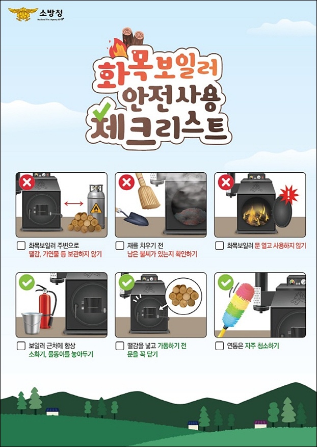 ÀÌ¿¡ ±Ý»ê¼Ò¹æ¼­´Â È­Àç ¿¹¹æÀ» À§ÇØ ¡ãº¸ÀÏ·¯ ÁÖº¯¿¡ ¶ª°¨¡¤Á¾ÀÌ¡¤ÀÇ·ù µî °¡¿¬¹°À» º¸°ü ±ÝÁö ¡ãÀç Ä¡¿ì±â Àü ºÒ¾¾ È®ÀÎ ¡ãº¸ÀÏ·¯ ÅõÀÔ±¸´Â ´ÝÀº »óÅ·Π°¡µ¿ ¡ãº¸ÀÏ·¯½Ç¿¡´Â ¼ÒÈ­±â¸¦ ºñÄ¡Çϰí Á¤±âÀûÀ¸·Î Á¡°ËÇØ ÁÙ °ÍÀ» ´çºÎÇß´Ù.