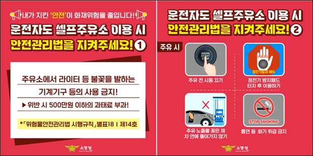 ÀÌ¿¡ ¼Ò¹æ¼­¿¡¼­´Â È­Àç ¿¹¹æÀ» À§ÇØ ¡ãÁÖÀ¯ Àü ½Ãµ¿ Á¤Áö ¡ãÀÌ¿ë Àü Á¤Àü±â ¹æÁö ÆÐµå ÅÍÄ¡ ¡ãÁÖÀ¯±¸ ÁÖÀ¯ ³ëÁñ Á¦°Å È®ÀÎ µî ¾ÈÀü ¼öÄ¢À» ÁؼöÇØ¾ß ÇÑ´Ù°í ¹àÇû´Ù.