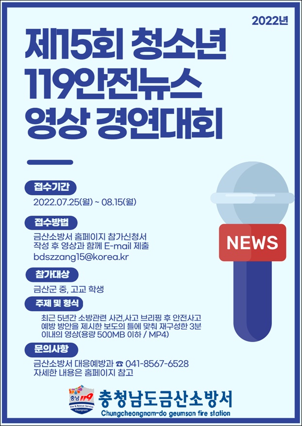 ±Ý»ê¼Ò¹æ¼(¼Àå ÁøÁ¾Çö)´Â °ü³» Áß¡¤°íµîÇлýÀ» ´ë»óÀ¸·Î ¡®Á¦15ȸ û¼Ò³â 119¾ÈÀü´º½º ¿µ»ó °æ¿¬´ëȸ¡¯¸¦ °³ÃÖÇÑ´Ù°í ¹àÇû´Ù.