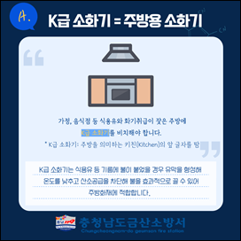 ±Ý»ê¼Ò¹æ¼(¼Àå °À±±Ô)´Â 9ÀÏ ½Ä¿ëÀ¯ µî À¯·ù »ç¿ë°ú ȱâÃë±ÞÀÌ ÀæÀº À½½ÄÁ¡ Áֹ濡¼ ÈÀç ¹ß»ý ½Ã È¿°úÀûÀÎ Ãʱ⿡ ÈÀç ´ëÀÀÀ» À§ÇØ K±Þ ¼Òȱ⸦ ºñÄ¡ÇØ ÁÙ °ÍÀ» ´çºÎÇß´Ù.