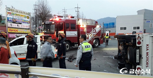 Á¦ÀÏÀå·Î±³È¸ 4°Å¸®¿¡¼­ ¿ÀÀü7½ÃÂë ¾ð´ö±æ¿¡¼­ ³»·Á¿À´ø Â÷·®°ú ÇÑŸ»çÅà ¹æÇâ¿¡¼­ ±³Â÷·Î¸¦ °Ç³Ê´ø Â÷·®ÀÌ Ãæµ¹ÇØ 1Åæ Æ®·°ÀÌ Àüº¹µÇ°í ¼ÒÇüÂ÷·®Àº Â÷·® Àü¸éÀÌ Âî±×·¯Á® ÀÖ´Ù.