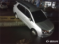 Áö³­20ÀÏ ¿ÀÀü1½Ã45Âë ºñ°¡ ¿À´Â »õº® ¿øÀθ𸦠Â÷·®ÀÌ °æ°è¼®À» ³Ñ¾î ±Ý»ê±ºÃ» ¿¬¸ø¿¡ ºüÁ® ÀÖ´Â ¸ð½À.