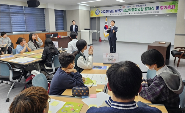 ±Ý»ê±³À°Áö¿øÃ»(±³À°Àå À̹ý¿¬)Àº Áö³­ 9ÀÏ ´ëȸÀǽǿ¡¼­ °ü³» ÃÊ¡¤Áß¡¤°íµîÇб³ Çлýȸ ȸÀå´ÜÀ» ´ë»óÀ¸·Î ±Ý»ê Çлý¿¬ÇÕȸ ¹ß´ë½Ä ¹× Á¤±âÃÑȸ¸¦ °³ÃÖÇß´Ù°í ¹àÇû´Ù.