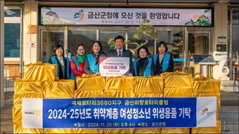 ±¹Á¦·ÎŸ¸®3680Áö±¸ ±Ý»ê¹ÌÇâ·ÎŸ¸®Å¬·´(ȸÀå Àӹ̿ë)Àº Áö³­ 26ÀÏ ±Ý»ê±ºÃ»À» ¹æ¹®ÇØ Áö¿ª ³» Ãë¾à°èÃþ û¼Ò³âÀ» À§ÇØ 550¸¸ ¿ø »ó´ç ¿©¼º¿ëǰ(»ý¸®´ë)À» ...