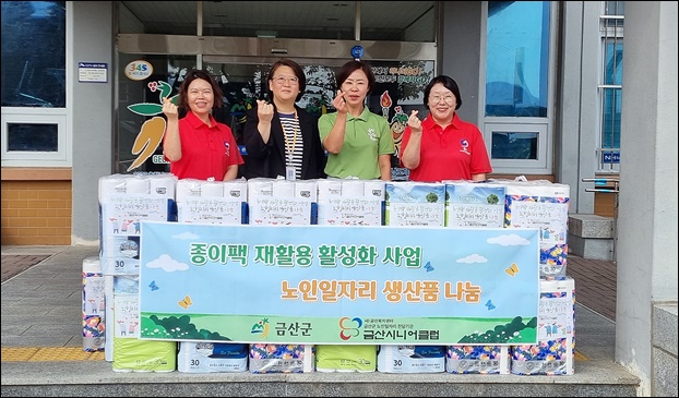 »ç´Ü¹ýÀÎ ±Ý»êº¹Áö¼¾ÅÍ ±Ý»ê½Ã´Ï¾îŬ·´(°üÀå ¹Ú¹Ì¿Á)Àº Áö³­ 13ÀÏ ¡®Á¾ÀÌÆÑÀçȰ¿ë Ȱ¼ºÈ­¡¯ »ç¾÷À» ÅëÇØ ¸ðÀº È­ÀåÁö 600·ÑÀ» ¾î·Á¿î ÀÌ¿ôµéÀ» À§ÇØ ½á´Þ¶ó¸ç ±Ý»ê±º¿¡ Àü´ÞÇß´Ù.