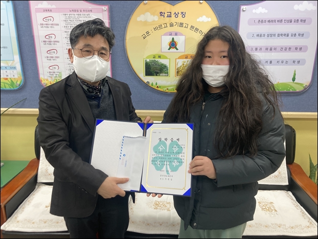 ¡ã±Ý»ê »ó°îÃʵîÇб³ ÀÌÇöÅ ±³ÀåÀÌ 2022³â ¿ì¼ö4-H ÀåÇлýÀ¸·Î ¼±¹ßµÈ 6Çг⠾ȴٰâ Çлý¿¢ ÀåÇÐÁõ¼­¸¦ ÀüÇÑ ÈÄ ±â³ä»çÁøÀ» ÃÔ¿µÇÏ´Â ¸ð½À. ¨Ï»ó°îÃʵîÇб³