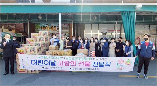 ±Ý»êÀÇ ´ëÇ¥Àû À¯Åë¾÷üÀÎ ±Ý»êÁß¾Ó½ÄÀÚÀçÇÒÀθ¶Æ®(´ëÇ¥ Á¶Ã¤¿¬)°¡ ¡®100Áֳ⠾À̳¯¡¯À» ¾ÕµÐ Áö³­ 3ÀÏ ±Ý»ê±ºÁö¿ª¾Æµ¿¼¾ÅÍÇùÀÇȸ¿¡ ¼±¹°À» Àü´ÞÇÏ¸ç ¼¾Å͸¦ ÀÌ¿ëÇÏ´Â Ãë¾à¾Æµ¿µé¿¡°Ô ±â»ÝÀ» ¼±»çÇß´Ù.