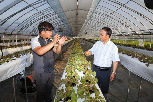 ¡ãû³â±Í³óÀÎ Á¤½Â¿ø(ÁÂ)¿Í ±Ý»ê±º³ó¾÷±â¼ú¼¾ÅÍ È²°æ·Ï ±â¼úº¸±Þ°úÀå(¿ì)ÀÌ »óÃßÇϿ콺 ÇöÀå¿¡¼ Àç¹è±â¼úÀ» »óÀÇÇϰí ÀÖ´Â ¸ð½À.