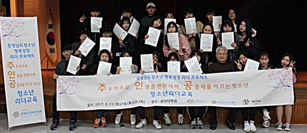 ±Ý»ê´Ù¶ô¿øÀº (Àç)Ãæ³²µµÃ»¼Ò³âÁøÈï¿ø(¿øÀå Àå±â¼ö) Ȱµ¿ÁøÈï¼¾ÅÍ¿Í ÇÔ²² Áö³­ 3¿ù 11ÀϺÎÅÍ ¸ÅÁÖ Åä¿äÀÏ ±Ý»ê´Ù¶ô¿ø ¼Ò°ø¿¬Àå¿¡¼­ ±Ý»êÁö¿ªÀÇ Ã»¼Ò³âµé 30¿©¸íÀ» ±Û·Î¹ú ¸®´õ·Î ¾ç¼ºÇϴ¡ºÃæÃ»³²µµ û¼Ò³â Çູ¼ºÀå ¸®´õ ÇÁ·ÎÁ§Æ® ¡®ÁÖ.ÀÎ.°ø¡¯¡»Ã»¼Ò³â ¸®´õ±³À°À» ¿î¿µÇß´Ù°í ¹àÇû´Ù.