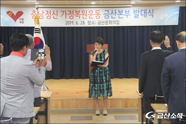 Ãæ³²Á¤½Å °¡Á¤º¹¿ø¿îµ¿ ±Ý»êº»ºÎ°¡ 28ÀÏ ±Ý»ê¹®È­ÀÇÁý 3Ãþ °­´ç¿¡¼­ ¹ß´ë½ÄÀ» °®°í º»°ÝÀûÀΠȰµ¿¿¡ µé¾î°¬´Ù.