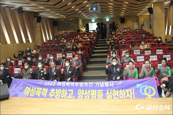 ¡ãÁö³­ 25ÀÏ Ã»»êȸ°ü 8Ãþ ¿©¼ºÃ¢Àǹ®È­¼¾ÅÍ¿¡¼­ ±Ý»ê¼ºÆø·Â»ó´ã¼¾ÅÍ ÁÖ°üÀ¸·Î ¿­¸° ¡®2002 ¿©¼ºÆø·ÂÃß¹æ ±â³äÇà»ç¡¯ Âü¼®ÀÚµéÀÌ ÆÄÀÌÆÃÀ» ¿ÜÄ¡¸ç ±â³ä»çÁøÀ» ÃÔ¿µ...