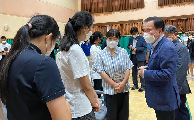 ¡ã±èÁöö Ãæ³²±³À°°¨(¿À¸¥ÂÊ)ÀÌ ¡®2022 Ãæ³² Àå¾ÖÇлý Áø·Îµå¸²Æä½ºÆ¼¹ú¡¯¿¡ ÃâÀüÇÑ À¯Á¤¹Î Çлý°ú ÀåÈ¿Á¤ ÇлýÀ» °Ý·ÁÇÏ´Â ¸ð½À. ¨Ï±Ý»ê¿©ÀÚ°íµîÇб³