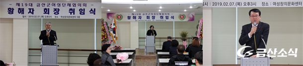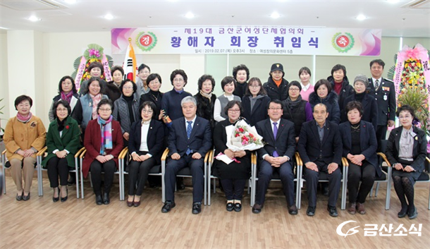 ±Ý»ê±º Á¦18´ë ¿©¼º´ÜüÇùÀÇȸ È²ÇØÀÚ È¸Àå ÃëÀÓ½ÄÀÌ 7ÀÏ ¿ÀÈÄ 3½Ã û»êȸ°ü ¿©¼ºÃ¢Àǹ®È¼¾ÅÍ 5Ãþ ¼¼¹Ì³ª½Ç¿¡¼ °³ÃֵƴÙ.