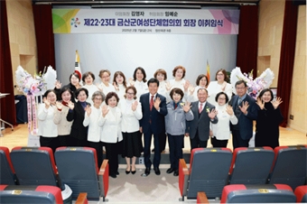 ÀÓ¿¹¼ø Á¦23´ë ±Ý»ê±º¿©¼º´ÜüÇùÀÇȸ ȸÀå ÃëÀÓ½ÄÀÌ Áö³­ 7ÀÏ ±Ý»ê±º¿©¼ºÃ¢Àǹ®È­¼¾ÅÍ¿¡¼­ °³ÃֵƴÙ.À̳¯ ÃëÀӽĿ¡´Â ¹Ú¹üÀÎ ±Ý»ê±º¼ö¸¦ ºñ·ÔÇÑ ÁÖ¿ä ³»ºó°ú Áö¿ª ¿©...