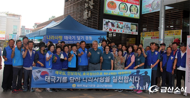 Á¦73Áֳ⠱¤º¹ÀýÀ» »çÈê ¾ÕµÐ 12ÀÏ ¹Ù¸£°Ô»ì±â¿îµ¿ ±Ý»ê±ºÇùÀÇȸ(ȸÀå ¹®±â¼±) ȸ¿øµéÀÌ ±Ý»ê¼ö»ï¼¾ÅÍ ¾Õ¿¡¼­ ³ª¶ó»ç¶û űر⠴ޱâ Ä·ÆäÀÎÀ» ÆîÃÆ´Ù.